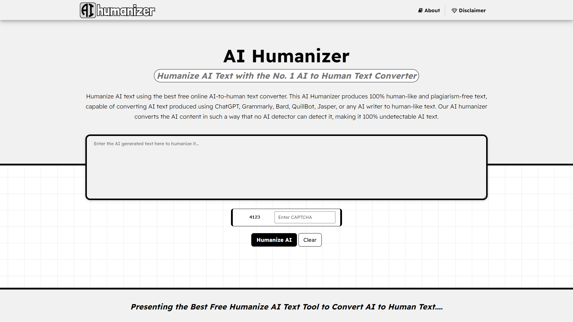 AI Humanizer permite a los usuarios acceder a su tecnología de conversión de texto impulsada por inteligencia artificial, que transforma contenido generado por herramientas como ChatGPT, Grammarly, Bard, QuillBot, Jasper y otros escritores de IA en texto que parece escrito por humanos.